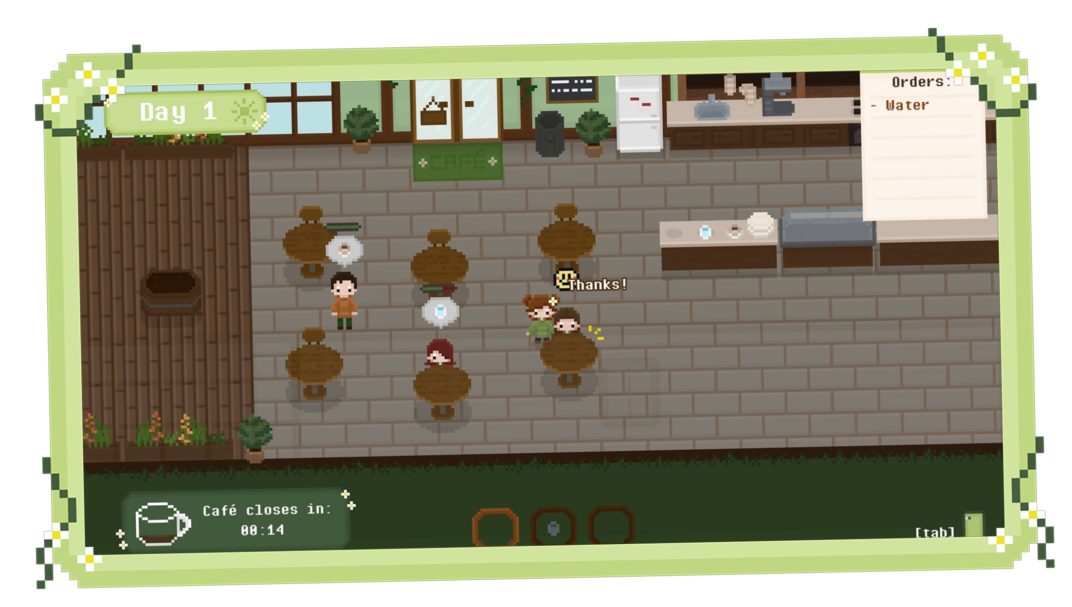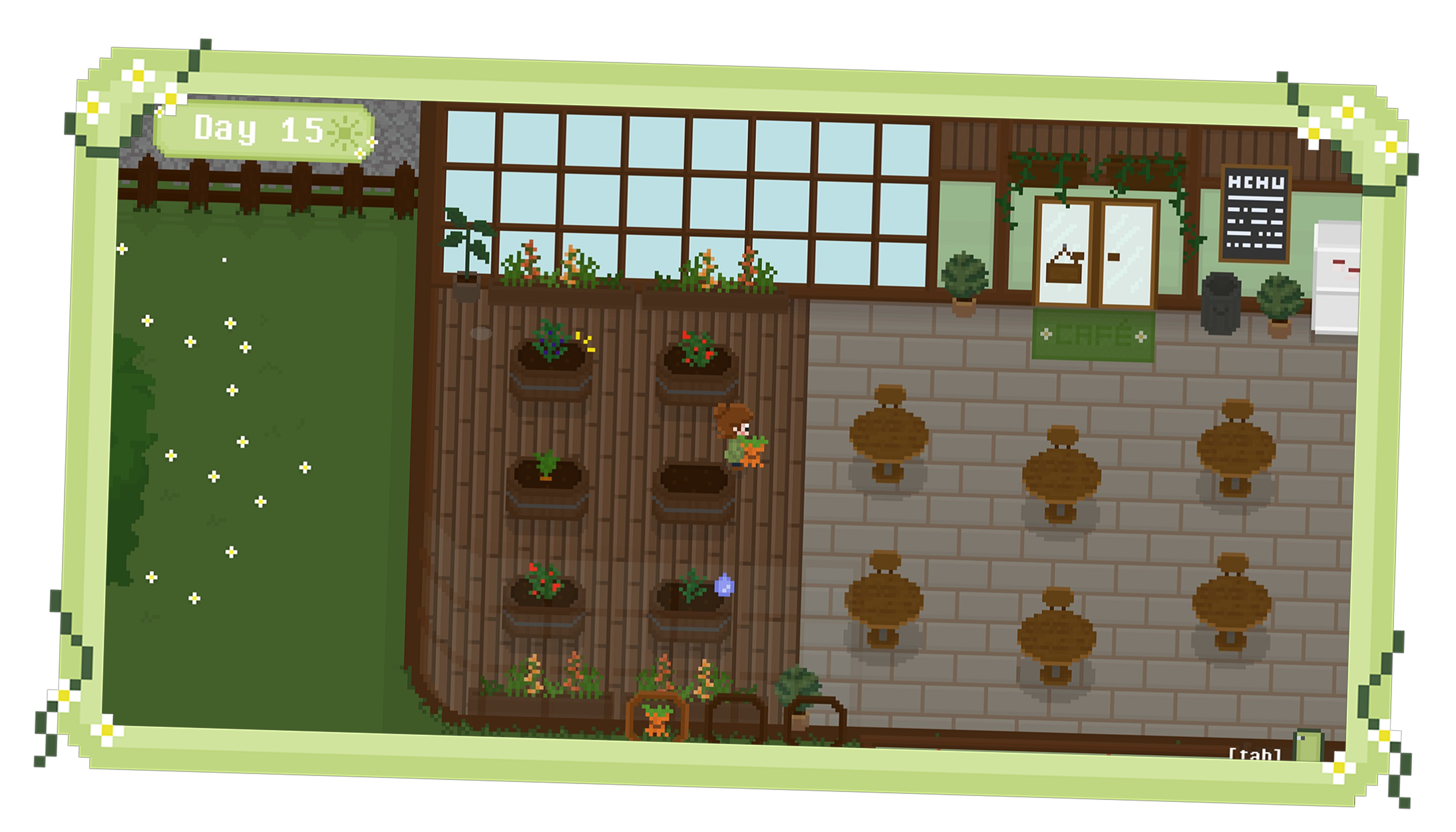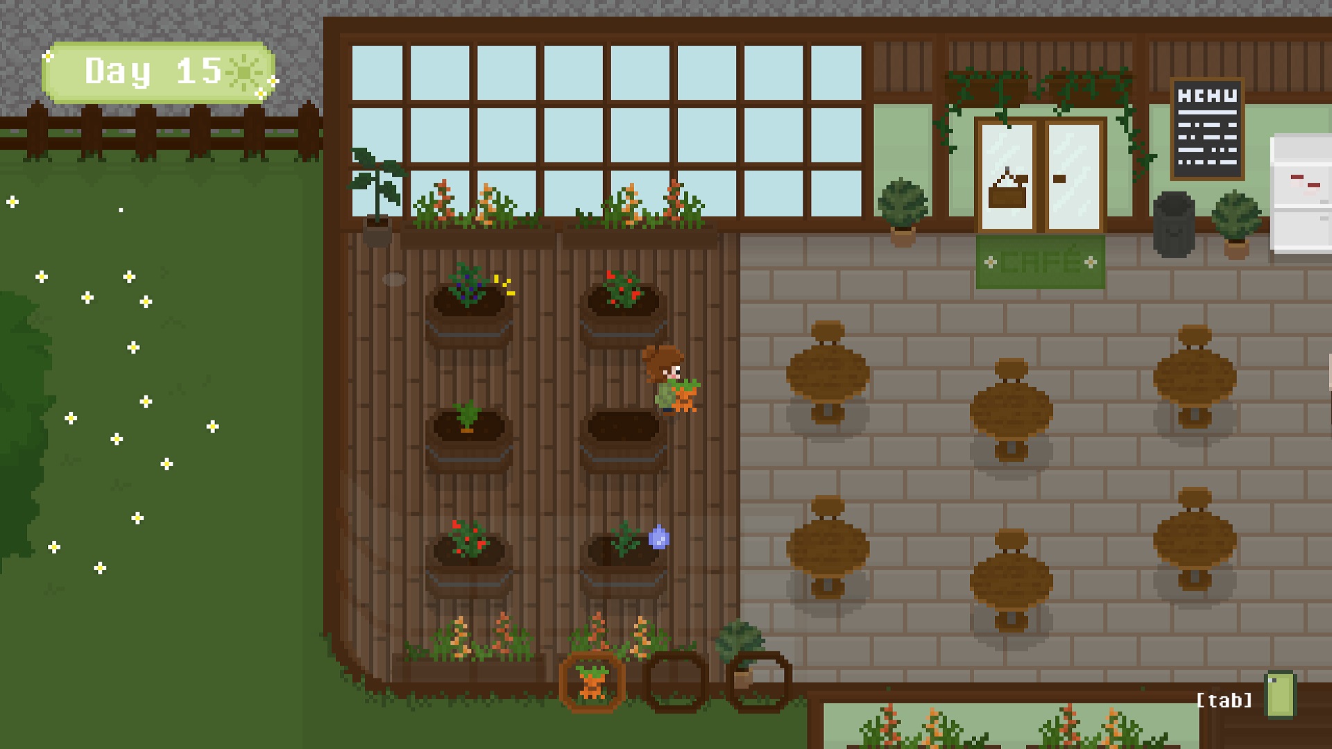 Greenhouse Café is a cozy pixel art café management game where you